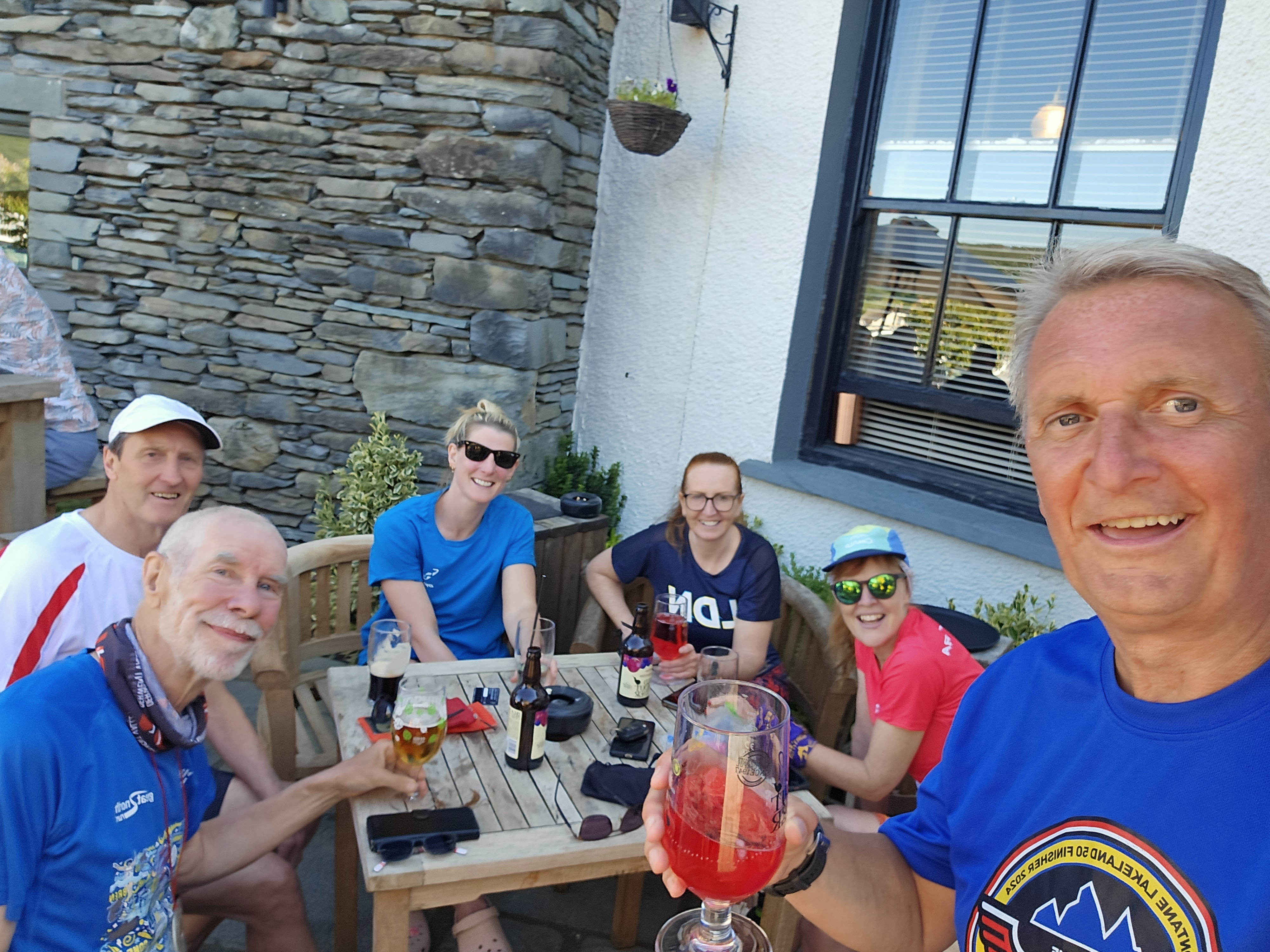 By the time I arrived in Ambleside it had just gotten dark & it was lovely to see a lady we run with on a Tuesday night had interrupted her family holiday in Windermere to come along & cheer me through the town – thanks Nicola! For the last few miles I latched onto a group of strangers & we all started an A-Z quiz to keep us going: music, movies, etc that sort of thing. We ended up with questions about Countries Capital Cities, starting with Australia, moving onto Brazil, etc. When we got to K I volunteered that Almaty was the capital of Kazakhstan – upon which it transpired that no-one had heard of Kazakhstan never mind Almaty & they obviously thought I was some sort of smart ar5e so they stopped talking to me. (& apparently it isn’t any more – according to Google it’s now a City called Astana so that goes to show how much I know). Undeterred by my new friends non-communication I successfully arrived in Coniston having completed 50 miles of running – but obviously also a lot of walking too!